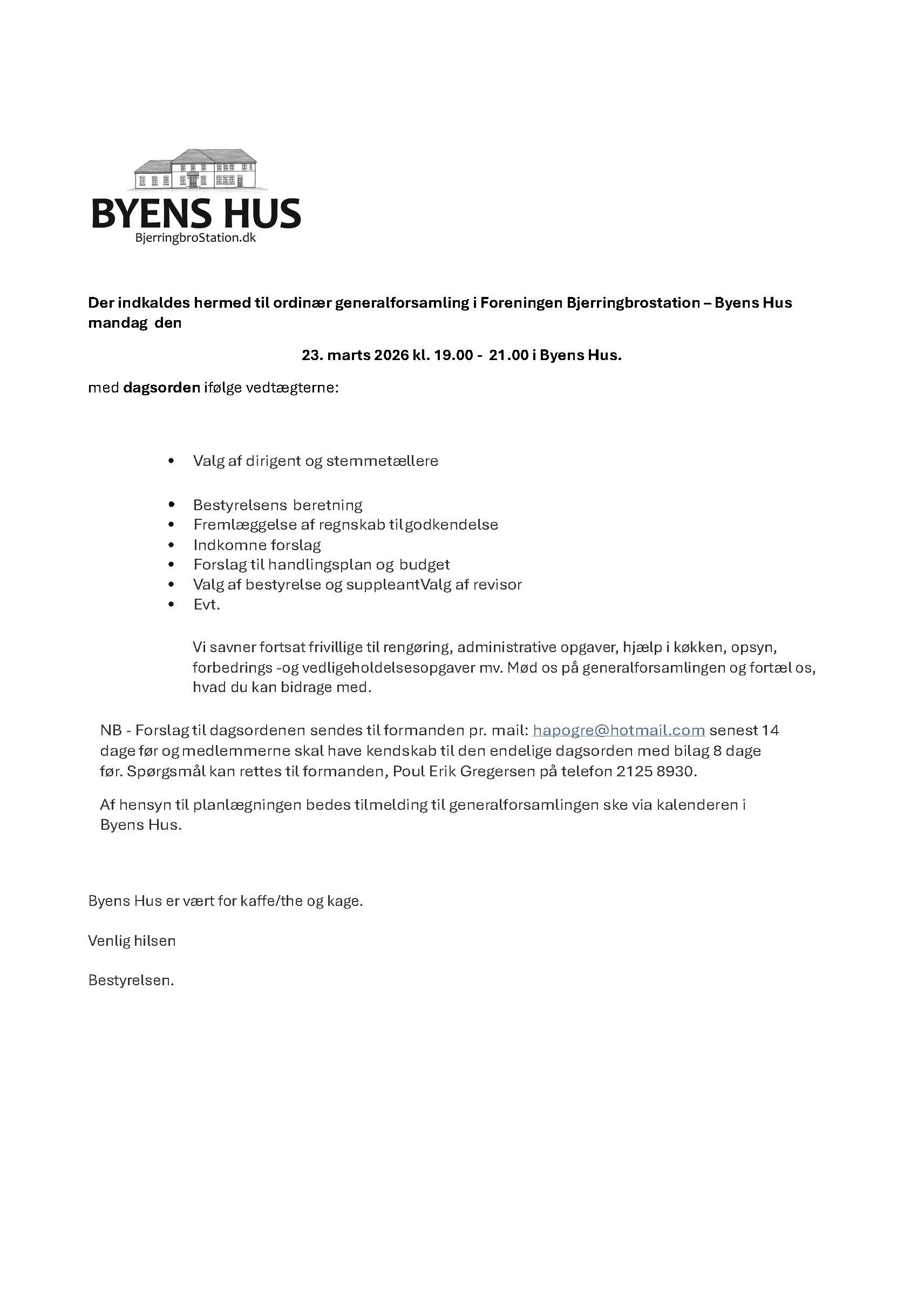Indkaldelsen er også sendt pr. e-mail til alle medlemmer den 25. februar 2026.